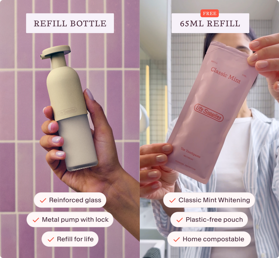 Most toothpaste tubes end up in landfill and take 500 years to break down into microplastics.